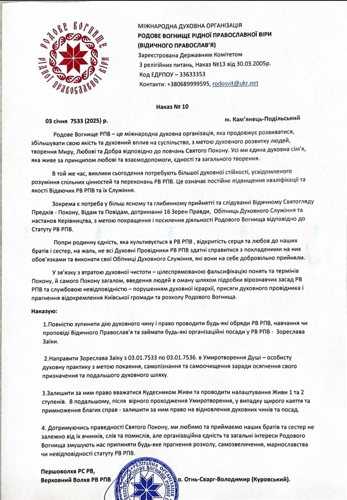 Родове Вогнище РПВ – це міжнародна духовна організація, яка продовжує розвиватися, збільшувати свою якість та духовний вплив на суспільство, з метою духовного розвитку людей, творення Миру, Любові та Добра відповідно до повчань Святого Покону. Усі ми єдина духовна сім’я, яка живе за принципом любові та взаємодопомоги, єдності та загального творення.